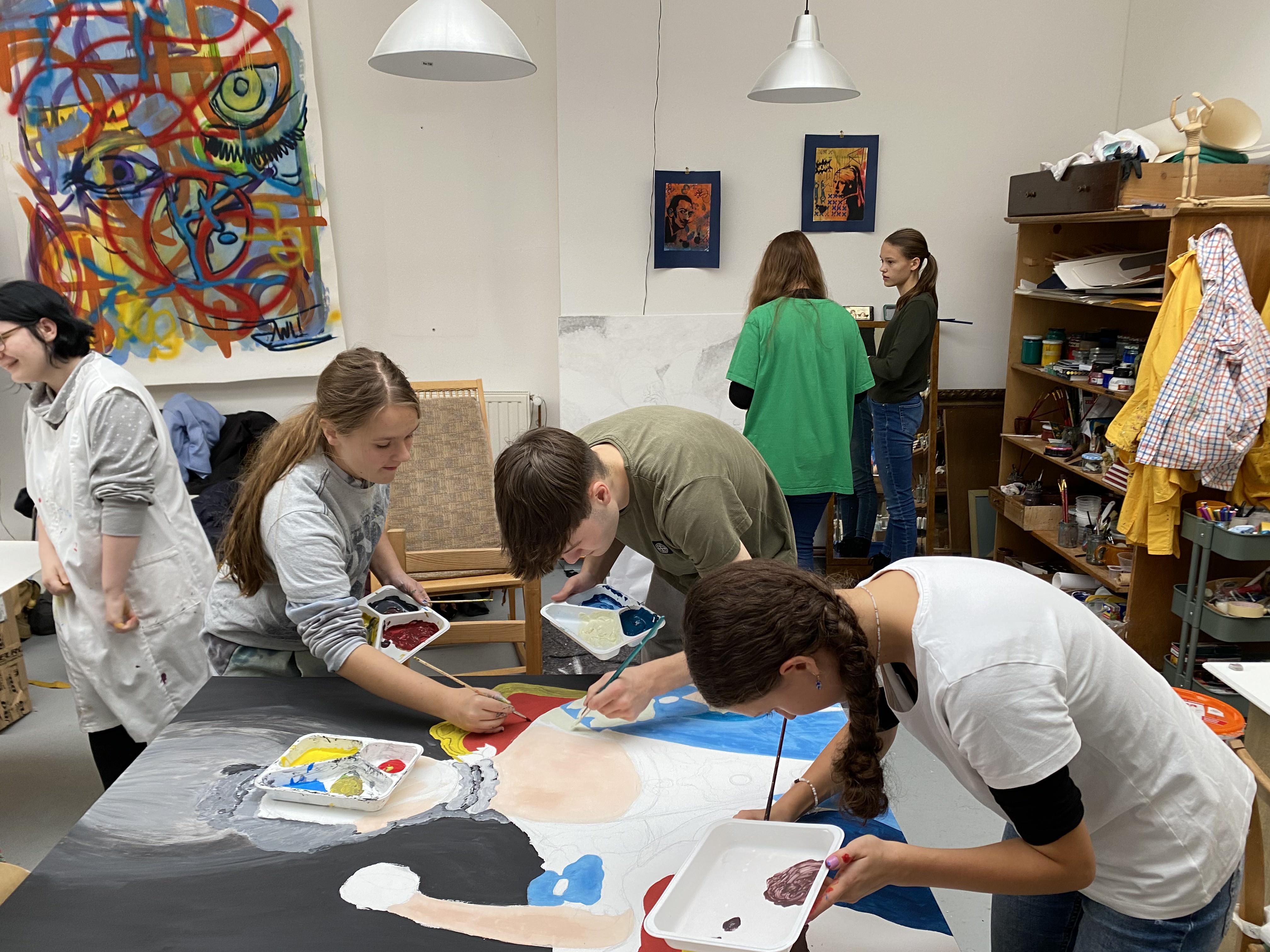 Dieser Gedanke steckt hinter der Idee: Raus aus dem Schulalltag und rein ins künstlerische Arbeiten mit besonders kunstinteressierten Schülern. In den Räumlichkeiten des Ateliers „Neue Kontur“ gelang das besonders gut in produktiver Atmosphäre.