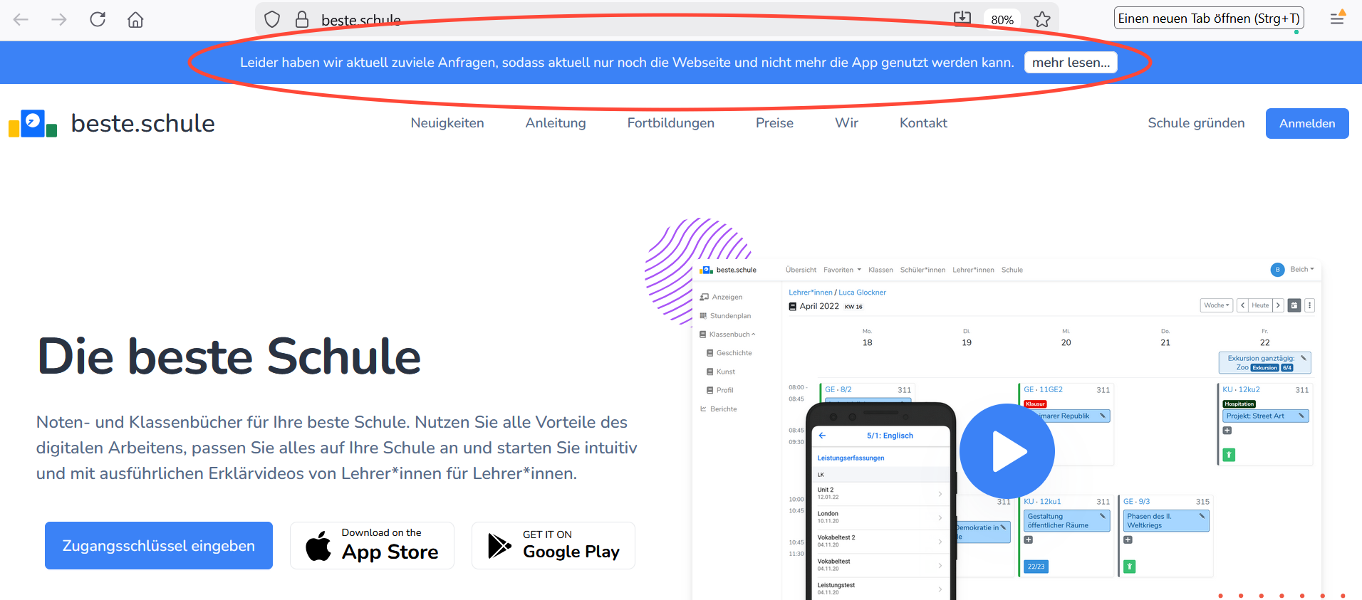 Die Benutzung von beste.schule ist über den Internet-Browser (Firefox, Chrome, Safari, ...) weiterhin möglich.