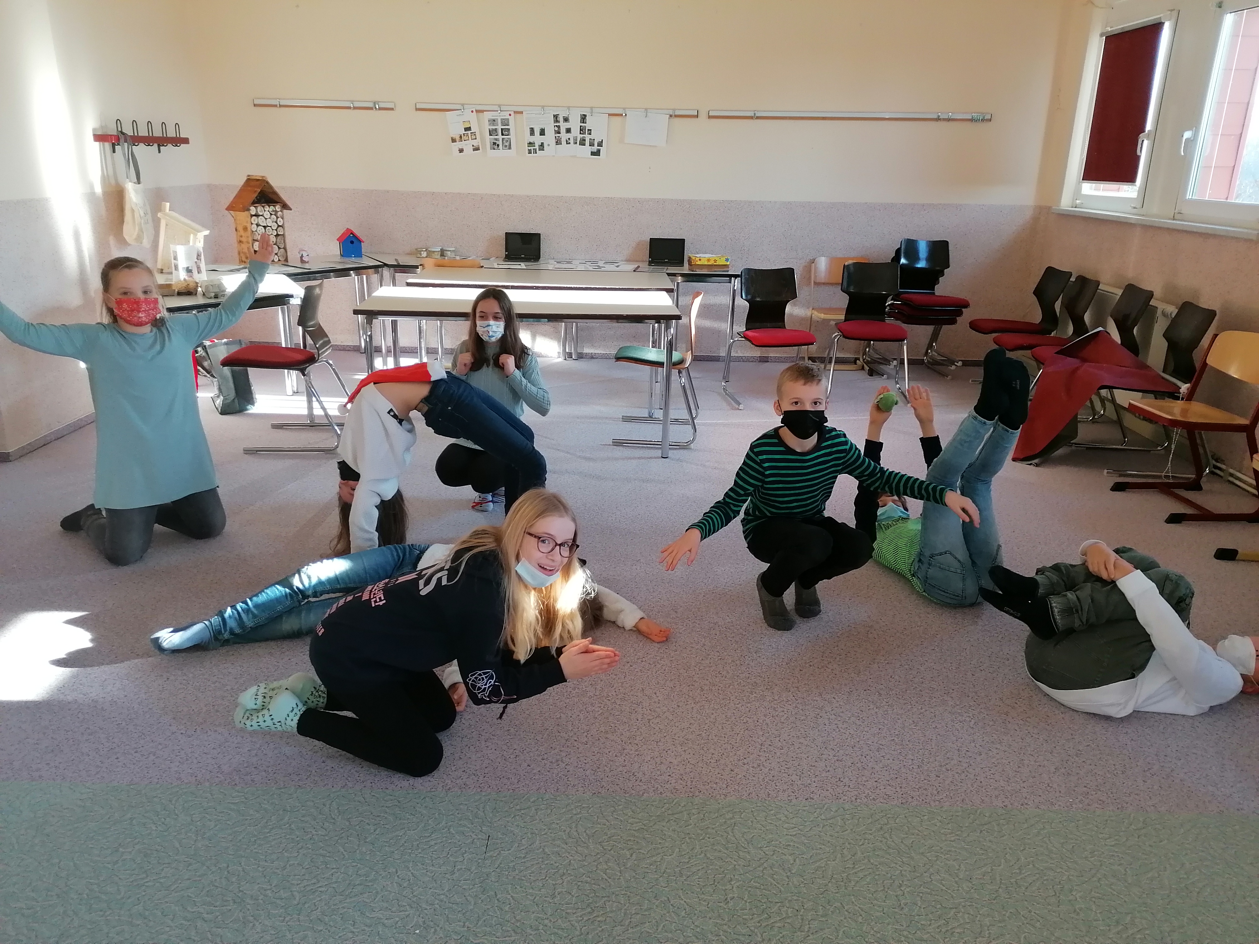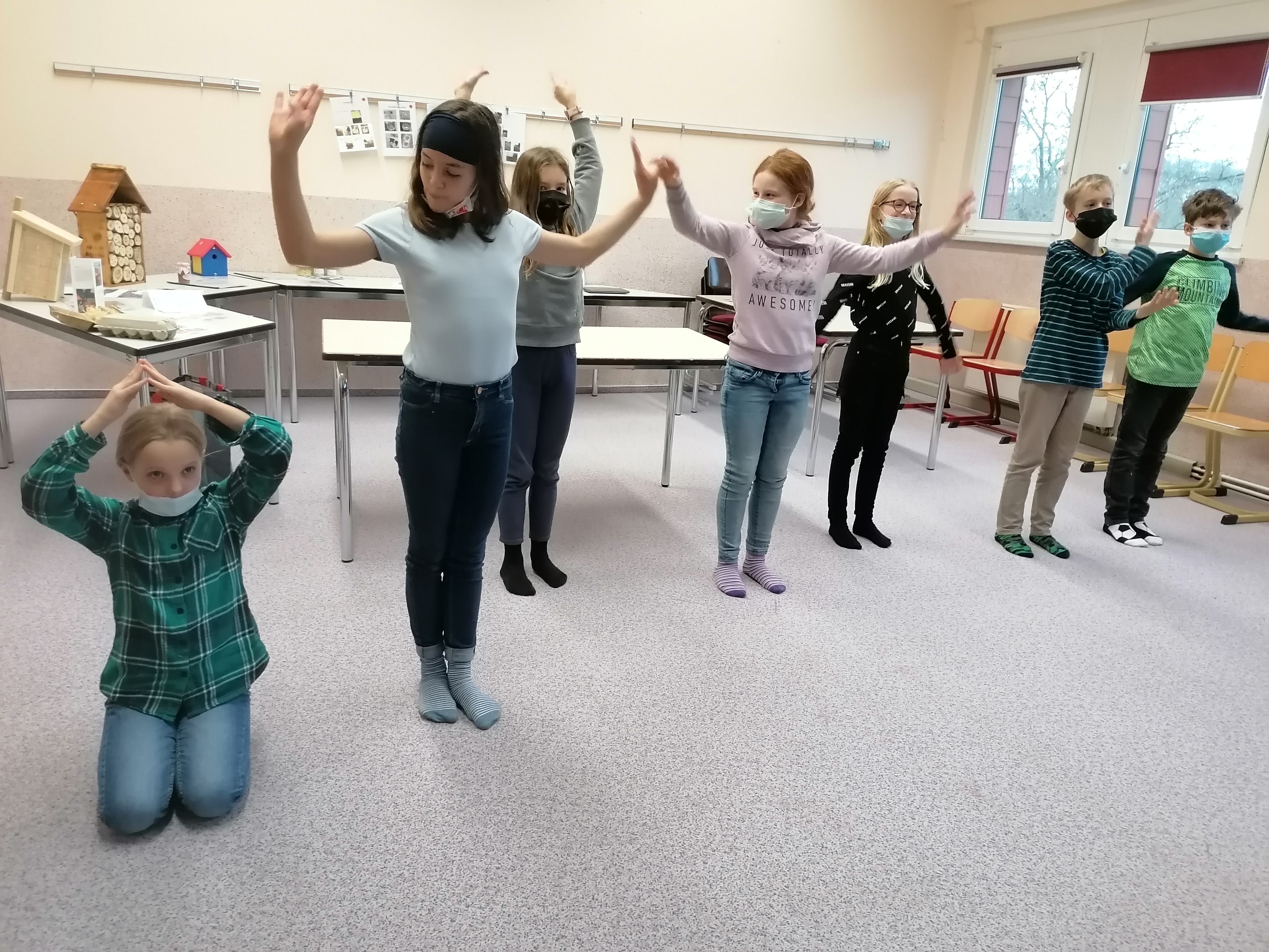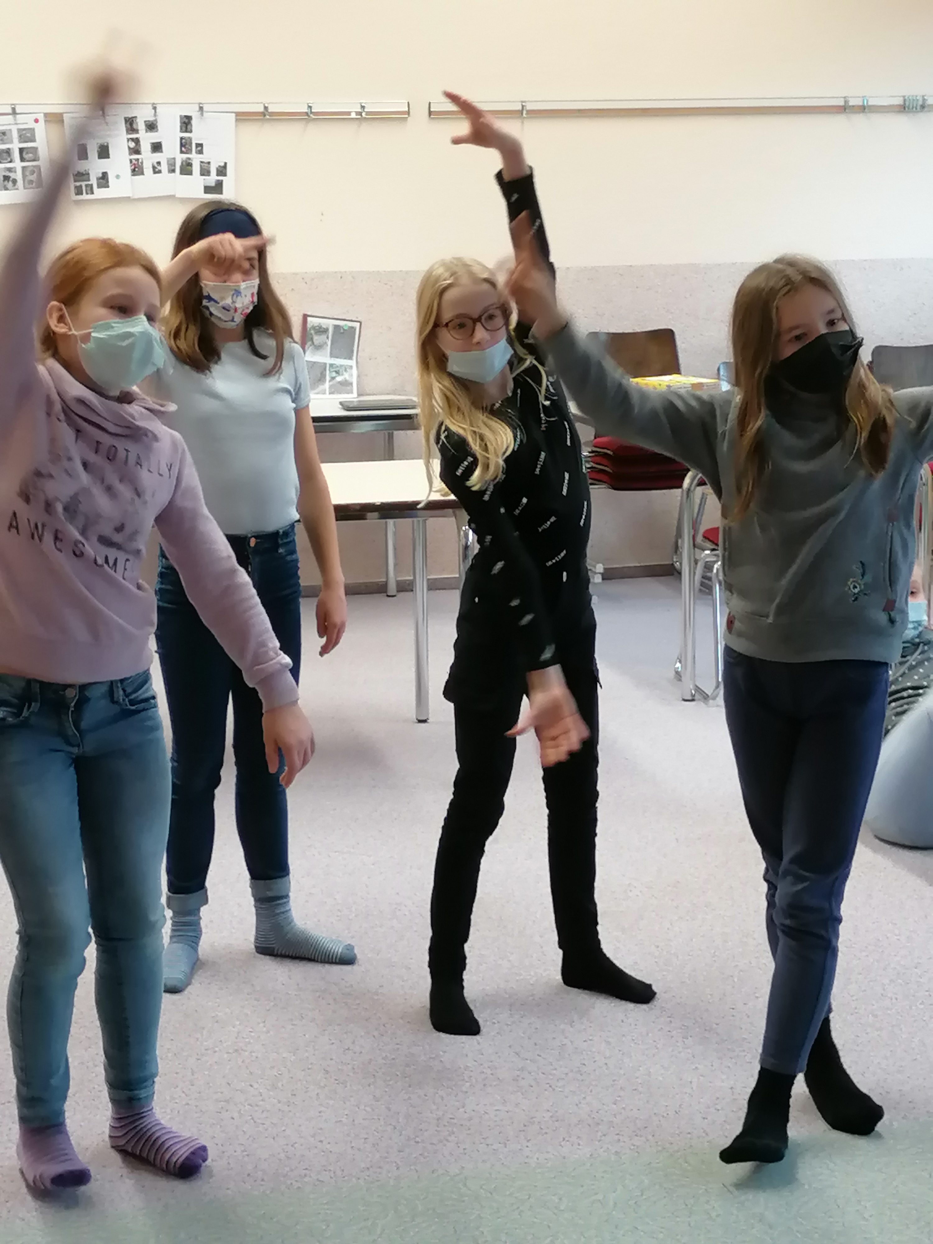 Seit Beginn des Schuljahres 2021/22 haben wir dabei professionelle Unterstützung. Das Projekt KOST (Kooperation Theater und Schule) ermöglicht uns über zwei Jahre hinweg eine Kooperation mit einer Theaterpädagogin aus Leipzig. Initiator des Projekts sind die Landesbühnen Sachsen in Radebeul, die regelmäßig Fortbildungen für die an der Kooperation beteiligten LehrerInnen anbieten. Einmal pro Woche finden die Proben mit Lehrerinnen und Theaterpädagogin statt, mit dem Ziel unserer Schultheatergruppe wieder Leben einzuhauchen.
