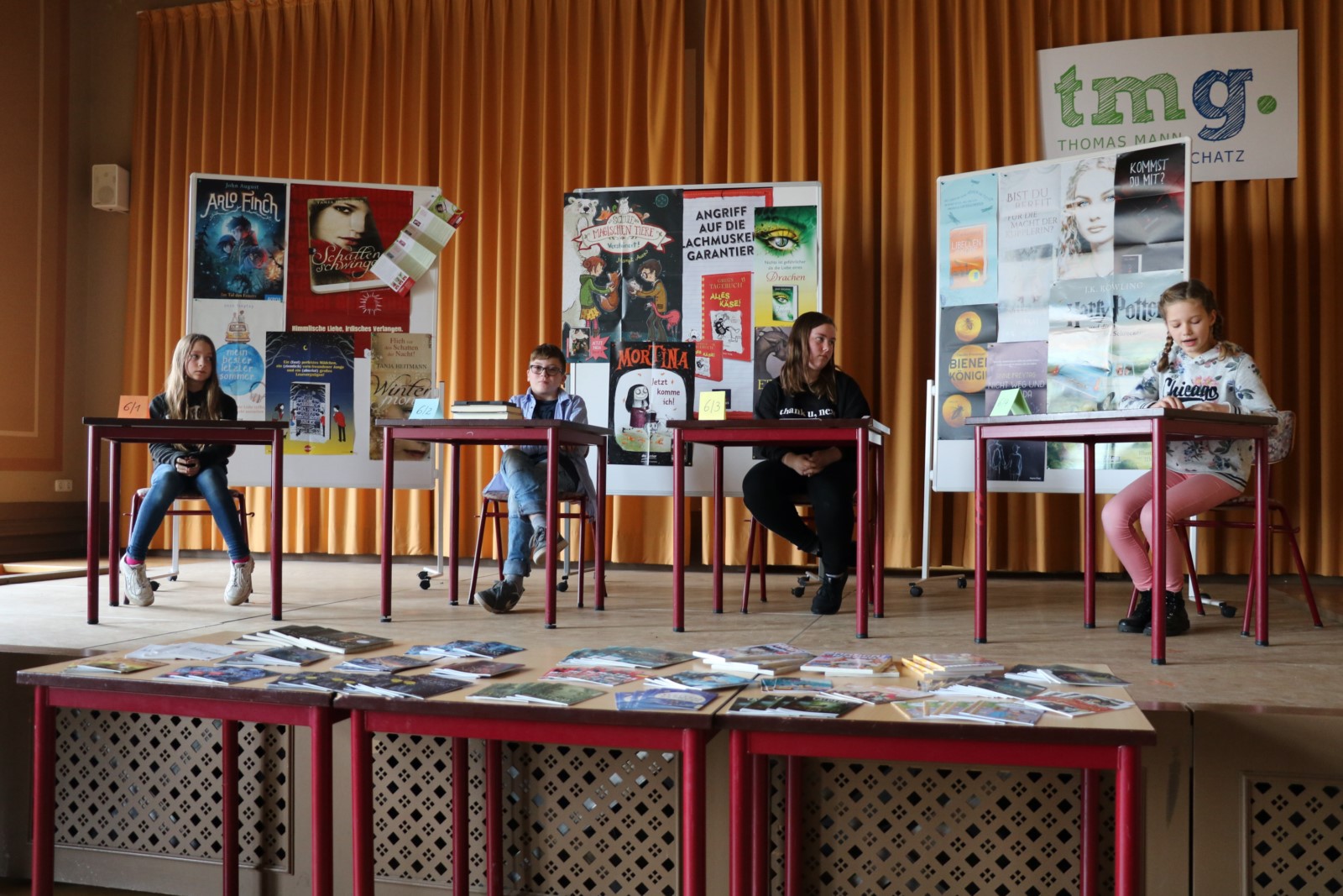 Die Freude am Umgang mit Literatur steht auch im Mittelpunkt des Literaturcafe´s, welches bis jetzt von den Deutschlehrern für interessierte Schülerinnen und Schüler der 5. bis 7. Klassen organisiert wurde. Neben dem Vorstellen eines aktuellen Kinderbuches wurden auch selbstgeschriebene Texte dem Publikum präsentiert. Der Balladenwettstreit der 7. Klassen rundet diesen Nachmittag, der bei „Kaffee“ und Kuchen ausklingt, ab.