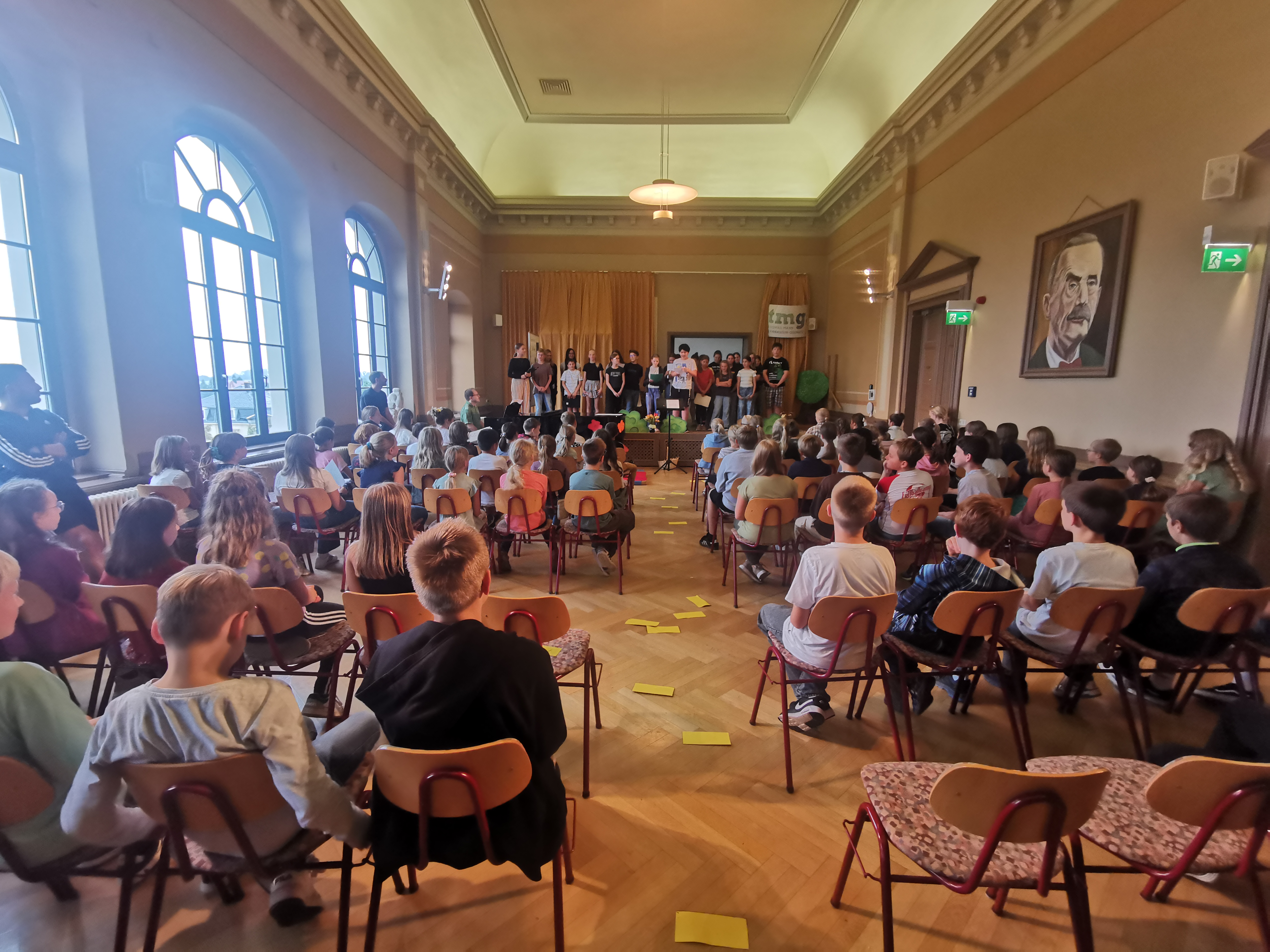 Das Schuljahr hat erst begonnen, aber unsere jungen Talente haben schon ihr Können unter Beweis gestellt. Die kulturelle Begrüßung der neuen fünften Klassen gestalteten der Kinder- und Jugendchor sowie unsere Theatergruppe mit dem Stück Die Zauberin von OZ.